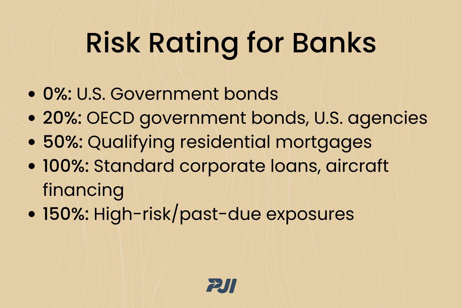 For charter operations, they think "Oh, this business might fail and there's no rich guy backing it. It's very risky." Therefore, banks will rate it between 120% and 150% risk rating based on a few factors.