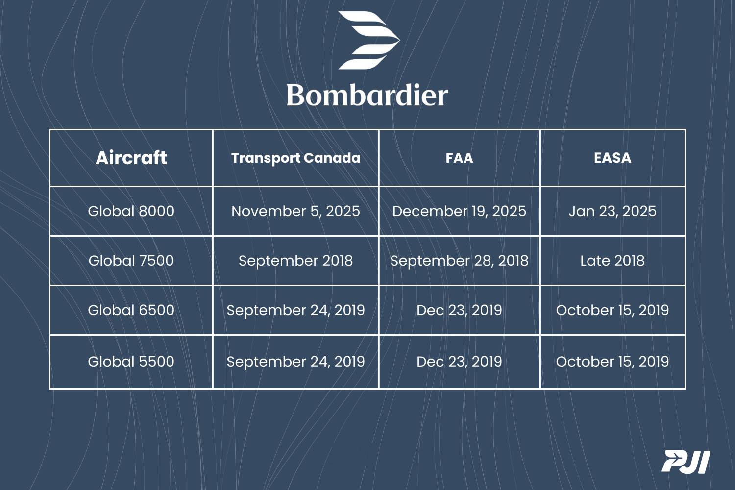 See how nicely the FAA and EASA followed Bombardier's timeline of certification? This is a nice, normal flow. All customers happy.