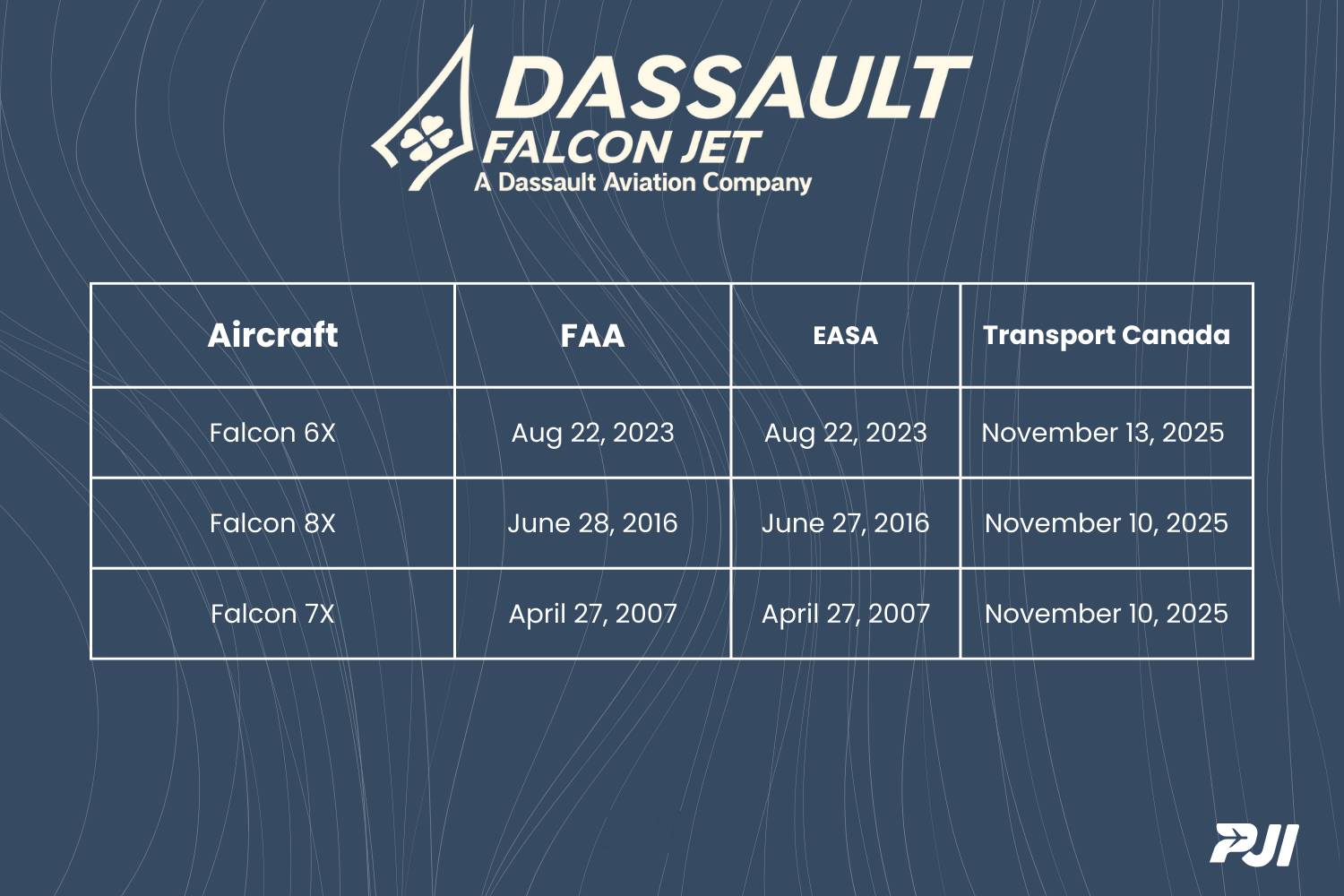 - Primary Certification: the manufacturer gets the Type Certificate in their home country. For Gulfstream, Textron, etc. this is FAA, for Dassault/Airbus its EASA, and for Bombardier its Canada.