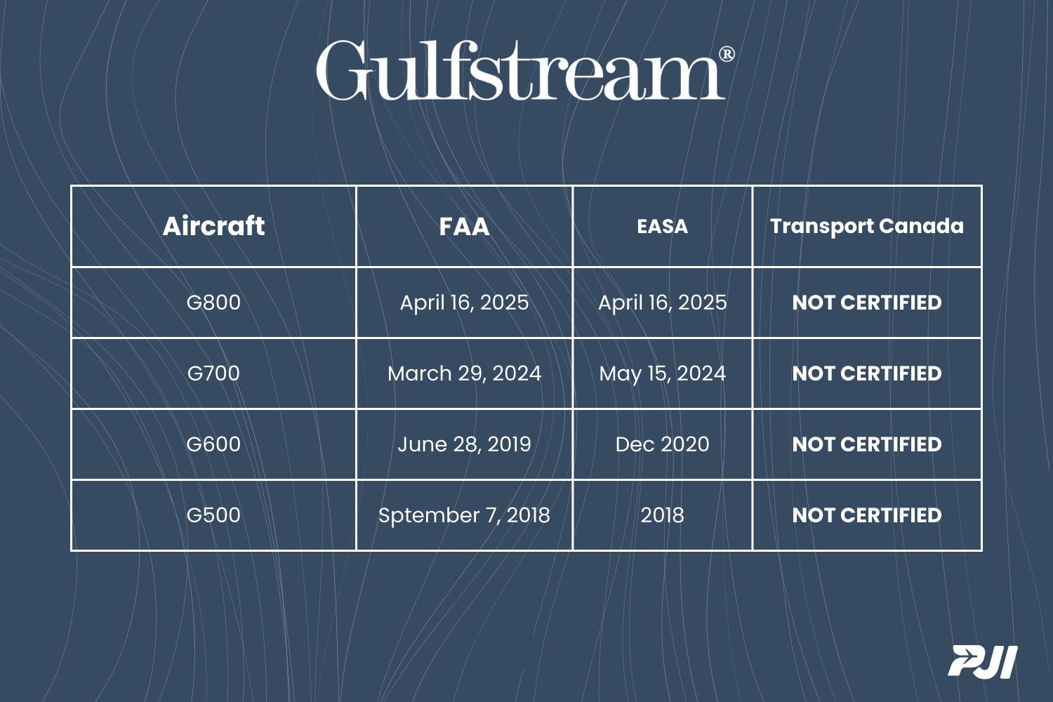Notice, the G500 and G600 are not exactly new aircraft and quickly approved by EASA. If 2 out of the 3 certify it, why wouldn't Canada? I think that's what we would all like to know...